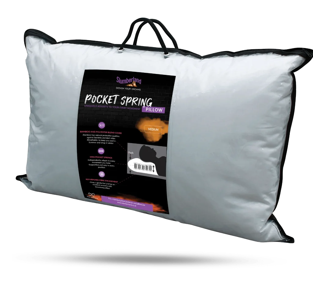 Sleep better with the Slumberland Pocket Spring Pillow—cooling comfort, lasting durability, and superior hygiene for peaceful nights